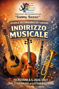 Sono aperte le iscrizioni all’Indirizzo Musicale per l’anno scolastico 2026/2027, dal 13 gennaio al 14 febbraio 2026.